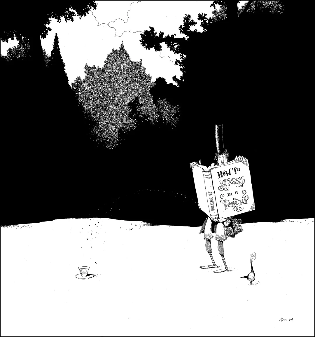 'How to Piss in a Teacup' - Pen and Ink